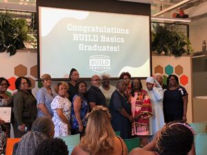It was an amazing day – Saturday, August 9 – at the Build Institute on Michigan and Trumbull. Thirteen participants from our first Entrepreneurship Cohort were honored at a graduation ceremony, after having completed eight weeks of training with facilitator Damon Thompson.