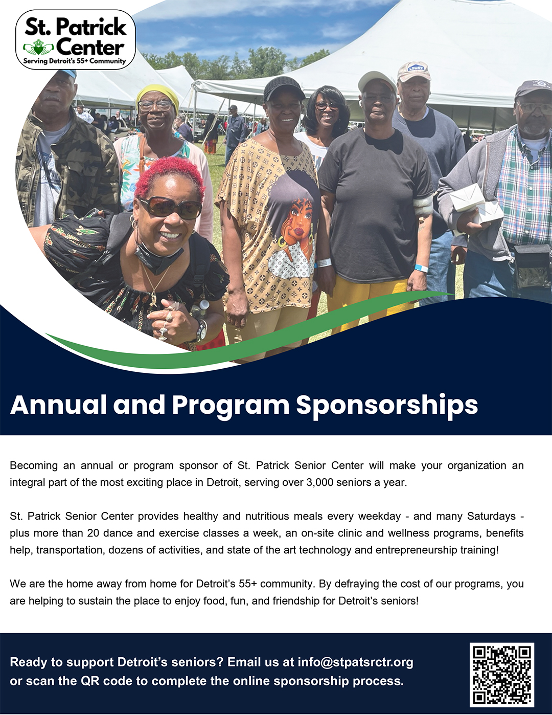 By becoming an annual sponsor of St. Patrick Senior Center, your organization will play a vital role in supporting one of Detroit’s most vibrant community spaces, serving more than 3,000 older adults each year.